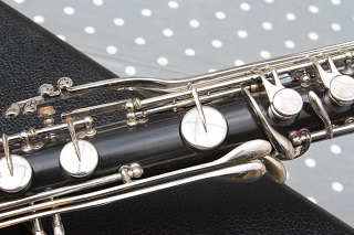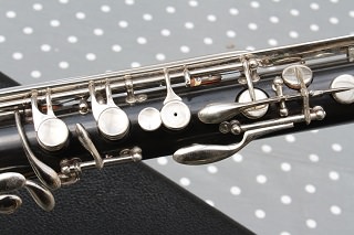 This is an excellent condition Buescher Bass Clarinet in Resonite to low Eb. The Buescher is a re-badged Selmer Bundy, made in the USA. This instrument was bought by a private individual in the USA, and has had very careful use, it is a commission sale for Clarinets Direct. There are no cracks or damage to the body, which is in fine order throughout. The crook and the bell are both in very good condition, with only very light scratches commensurate with little use. There is a floor spike attachment to the bell. There is no wear to the Nickel Silver key work, which is most rare with these Bass clarinets, the plating shows only slight cloudiness, again commensurate with very light use. The Bass has Tan Leather pads throughout in good condition. The instrument is well regulated, with all touch and tenon corks in good condition, it will play perfectly out of the box, and for many years to come. The serial nos. are 83309. The original case is again in very good used condition. The m'piece is an upgrade to a Yamaha 4C in excellent condition. The instrument comes with pull through, reeds and a sling. This is a fine example of an entry level Bass; it is an ideal first Bass clarinet purchase. |