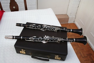 pair of Buffet Crampon, E13 clarinets in Nickel Silver plate.