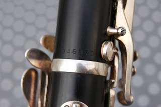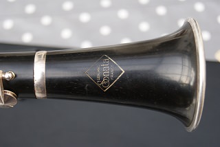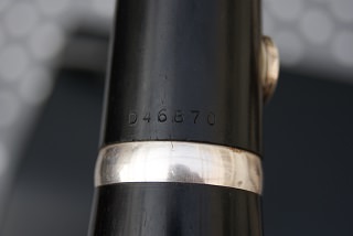 A very good condition Leblanc Sonata Bb clarinet, which we have just taken in part exchange. This instrument is Leblanc's entry level professional model, which, like the Buffet R13, features a polycylindrical bore in the upper joint. It was described by Leblanc as having " a classic balance of playing efficiency and tonal beauty and flexibilty that make it one of the world's finest clarinets". This example has no damage or repairs to the wood, which is in excellent condition. The Silver plate key work is very good. All pieces are original & all have matching stamps We have just fully repadded in Pisoni premium Deluxe fishskin pads, & the clarinet is sold with a full years' warranty. The matching serial nos. are D46870. The supplied m'piece is a Rico A5 in good condition. The case is the original, in good condition, with some stains to the interior and slight scuffs to the exterior. |