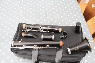 The clarinet has just been re-padded in fish skin pads throughout, and